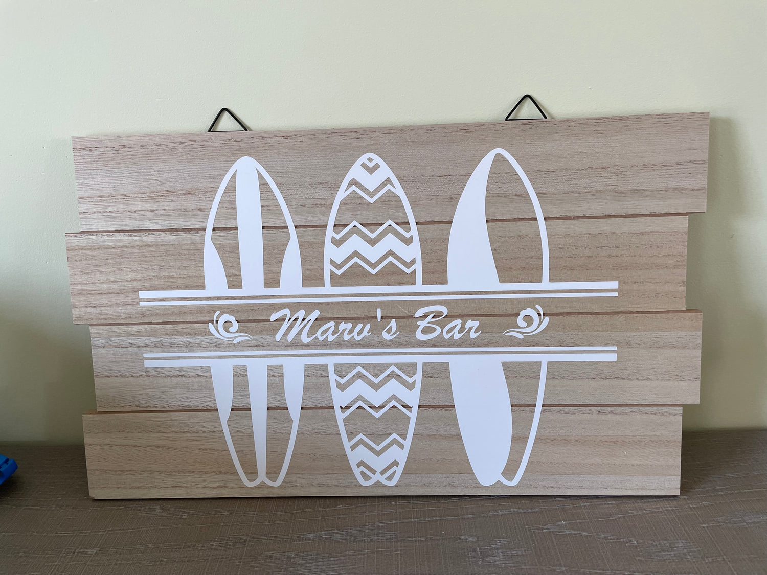 Marvin kreeg een tuinbar cadeau voor zijn verjaardag. Een gepersonaliseerd naambord kon natuurlijk niet ontbreken.